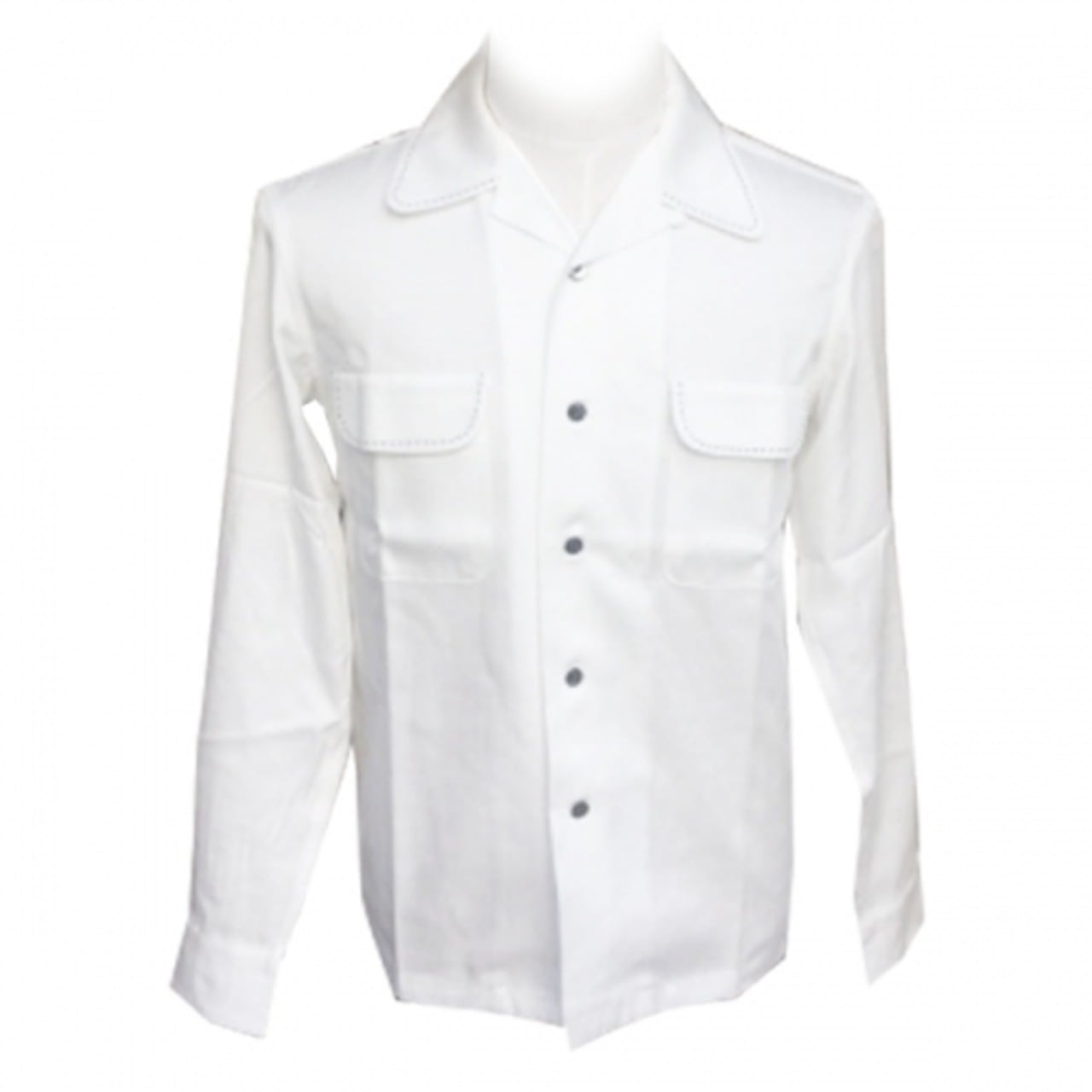 Addiction KUSTOM THE LIFE OPEN COLLAR SHIRTS "OPEN GABARDINE L/S SHIRT" WHITE アディクション ハンドステッチ オープンカラー シャツ