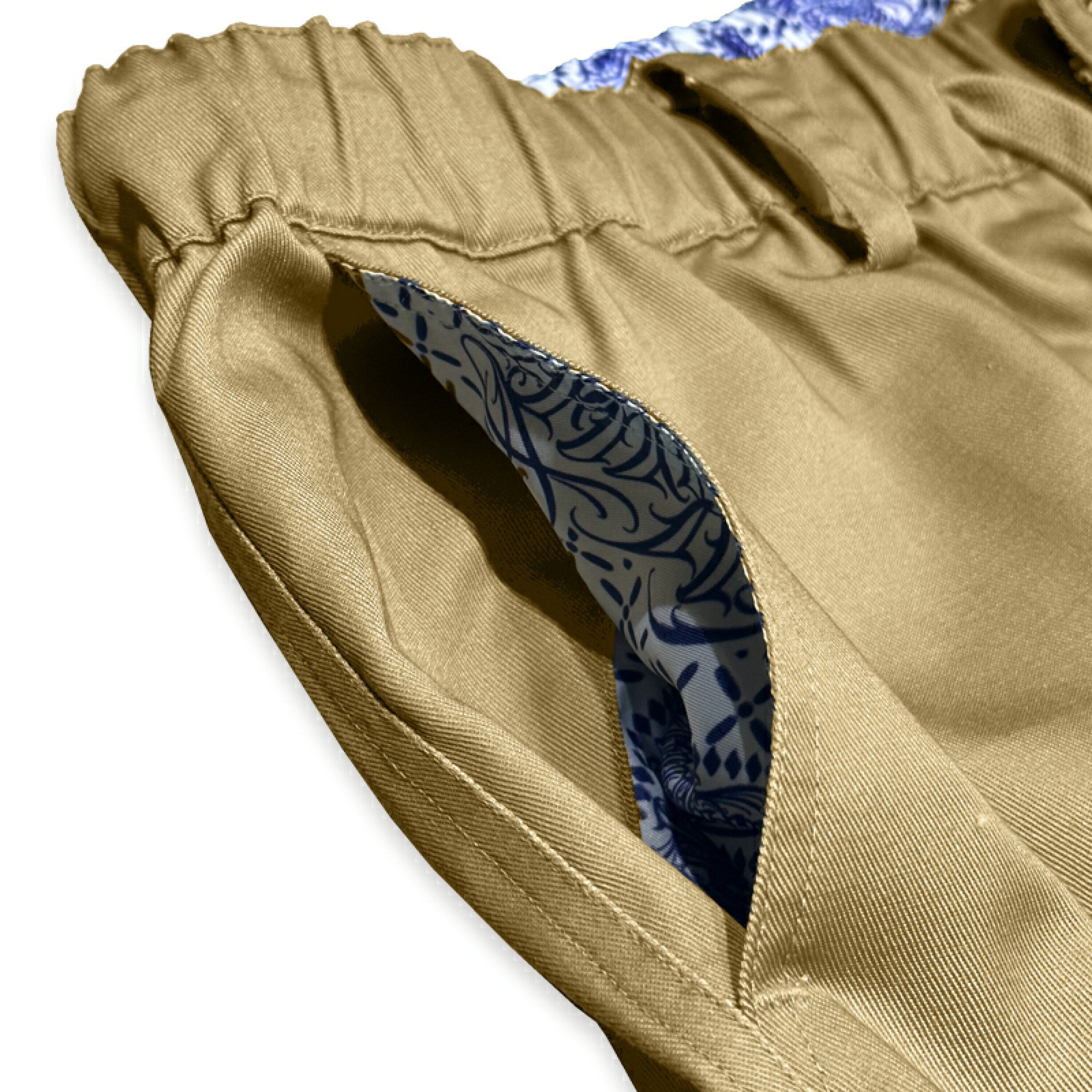 • ウエスト内張りとサイドポケット内にBANDANA総柄生地